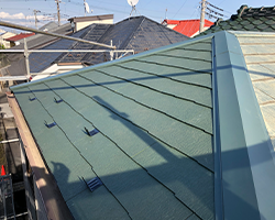 桟木の間にガルバリウム鋼板製の屋根材を設置したら修理は完了です。