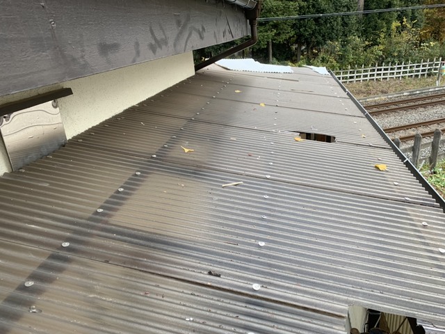 こちらは、雹が降った影響で波板に穴があいてしまったため、じもと屋根修理にご相談をいただいた事例です。