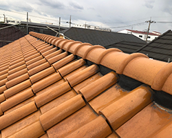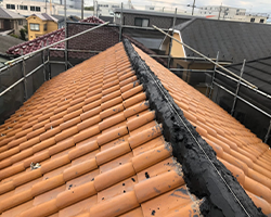 瓦屋根の棟へ積み直し工事を行いました。