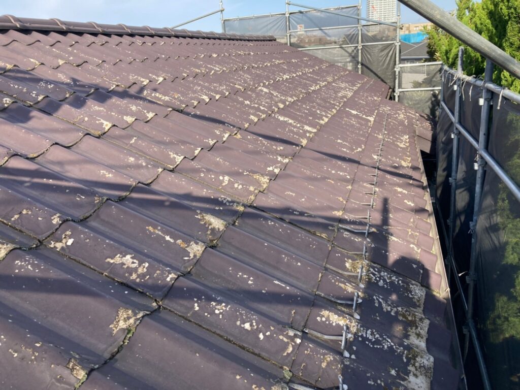既に廃版商品になっているセキスイの「かわらU」でできた屋根を葺き替え